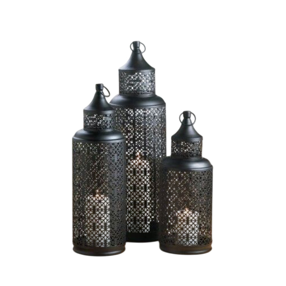 โคมไฟโลหะเหล็กห้อยทำมือเป็นมิตรต่อสิ่งแวดล้อมสไตล์โมร็อกโกที่วางเทียนตกแต่งบ้านสไตล์โมร็อกโก