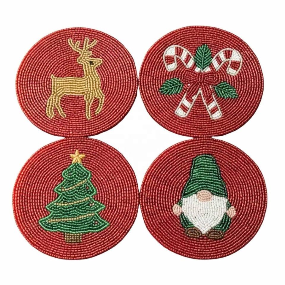 ชุดจานรองแก้วแก้วลูกปัดลายนกแปลกตา งานแฮนด์เมดคุณภาพสูง 4 ชิ้น จานรองแก้วทรงกลมตกแต่ง ขนาด 10 ซม. สำหรับโต๊ะกาแฟสไตล์อินเดีย