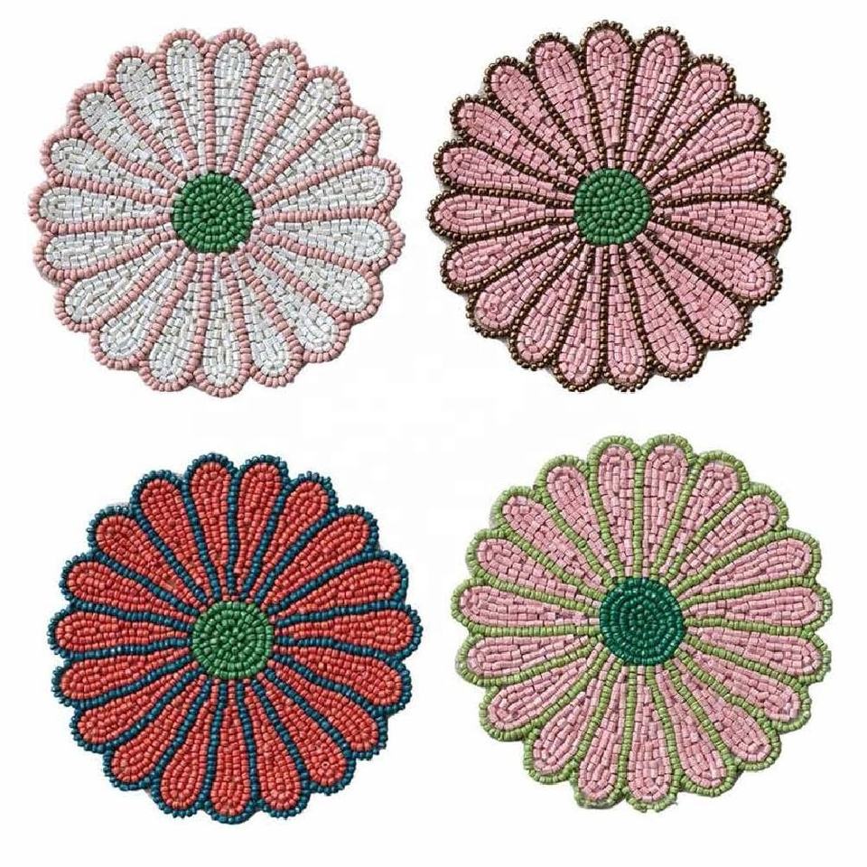 ชุดจานรองแก้วรูปหัวใจทำมือคุณภาพสูง ประดับด้วยลูกปัดแก้ว ขนาด 10 ซม. จำนวน 4 ชิ้น สำหรับตกแต่งโต๊ะอาหาร โต๊ะกาแฟ หรือโต๊ะครัว