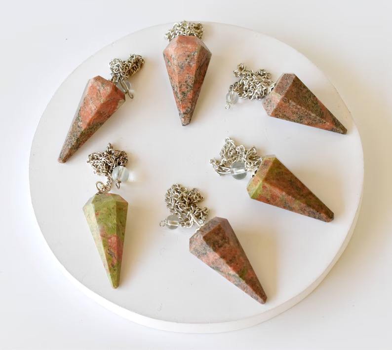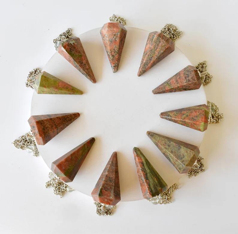 ลูกตุ้มคริสตัลยูนาไคต์ K9 คุณภาพสูง งานแฮนด์เมด ดีไซน์ทรงกรวยเหลี่ยมเพชรพลอย ขนาดสั่งทำได้ ใช้สำหรับการบำบัด การทำนาย และเป็นของที่ระลึกจากอินเดีย