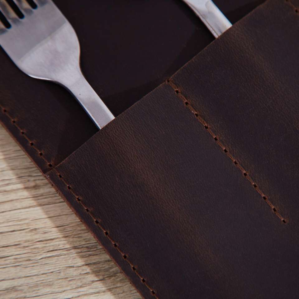 ที่ใส่ช้อนส้อมหนังแท้คุณภาพสูง ทนทาน ผลิตด้วยมือ กันน้ำ กันกระแทก ใช้ซ้ำได้ สำหรับธุรกิจโรงแรมและร้านอาหาร