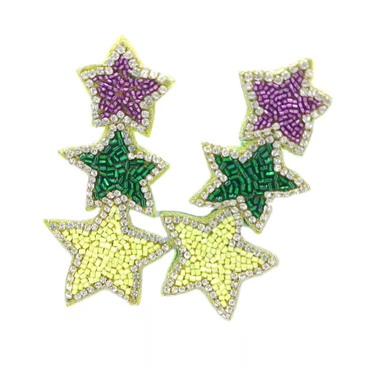 ต่างหูห้อยประดับลูกปัดงานปักมือคุณภาพสูงสไตล์มาร์ดิกราส์ ดีไซน์หรูหราโดดเด่นสำหรับสาวๆ เครื่องประดับแฟชั่น