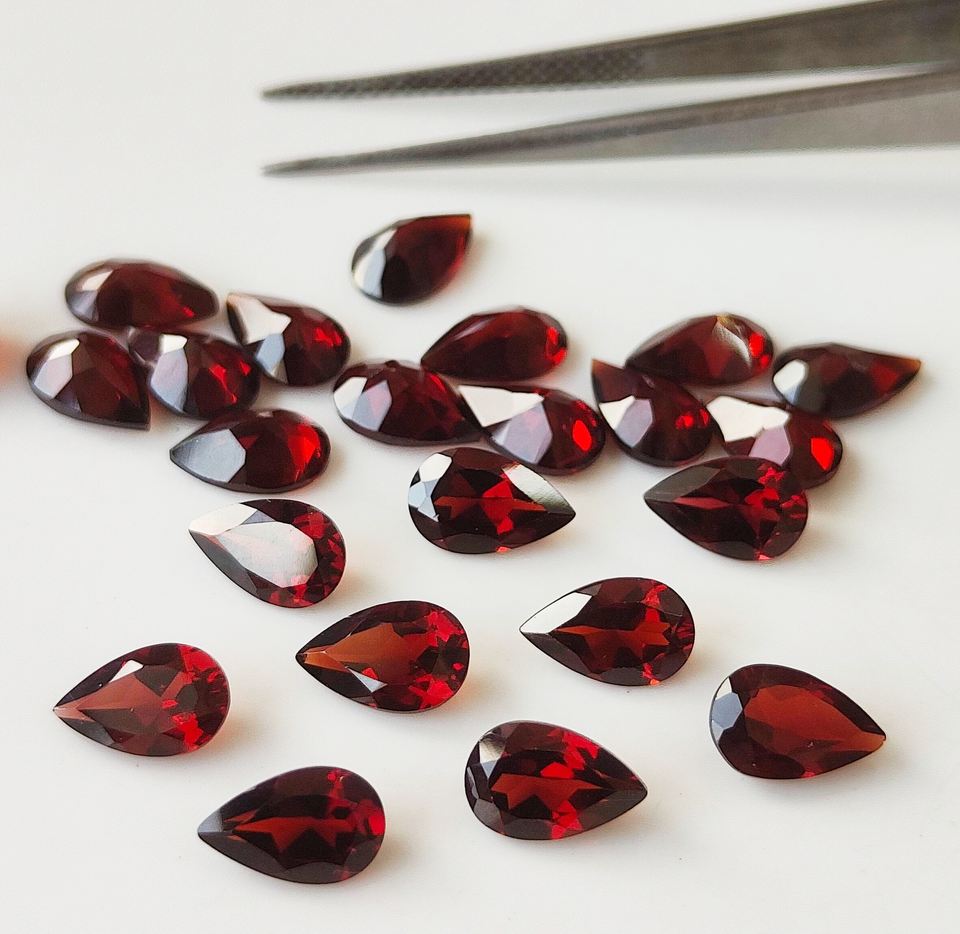 พลอยโกเมนสีแดงธรรมชาติแบบแฮนด์เมดตัดเป็นเหลี่ยมเพชรพลอยหลวม3x5mm-8x12mm ลูกแพร์ทำด้วยมือสำหรับทำเครื่องประดับ