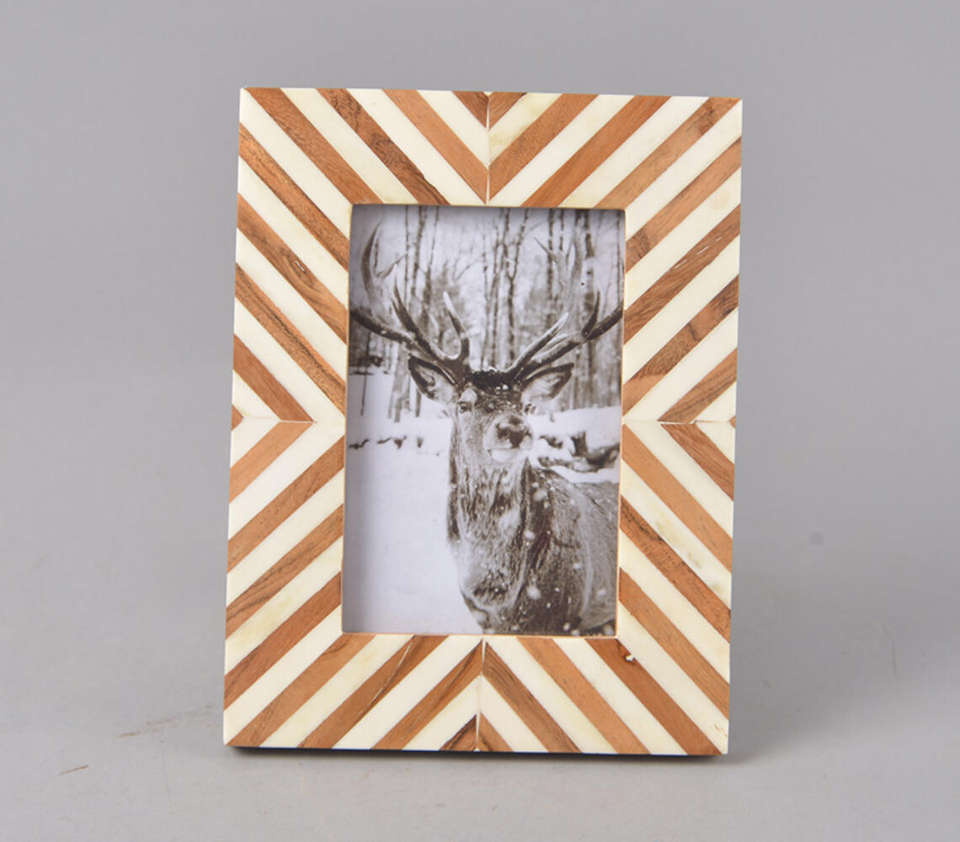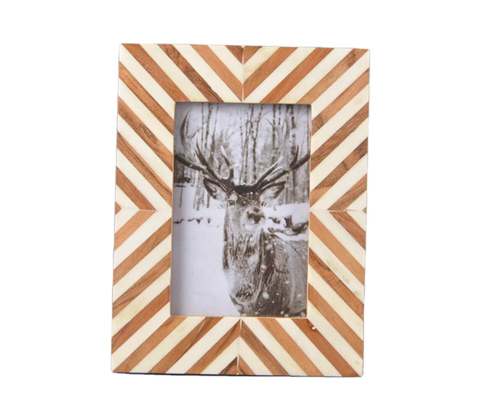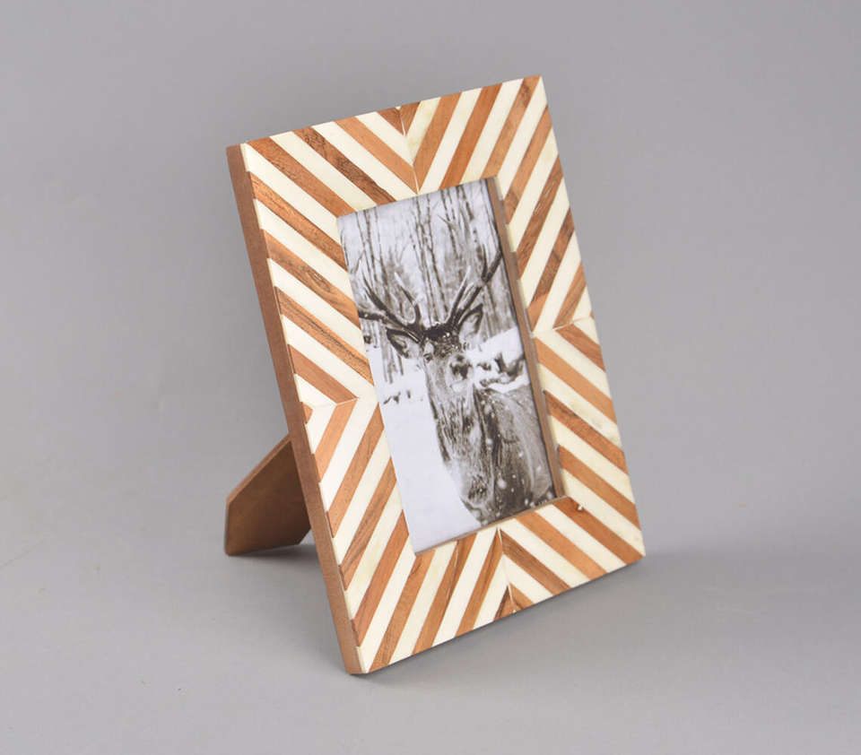 กรอบรูปทำมือลายเรขาคณิตซิกแซกทันสมัย ปรับแต่งได้ พร้อมส่วนประกอบไม้สีอบอุ่น ครีม และสีขาวงาช้าง สำหรับสไตล์ร่วมสมัย