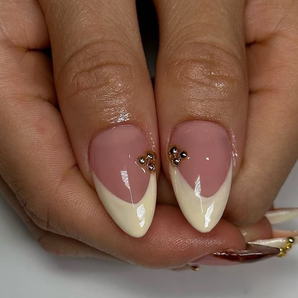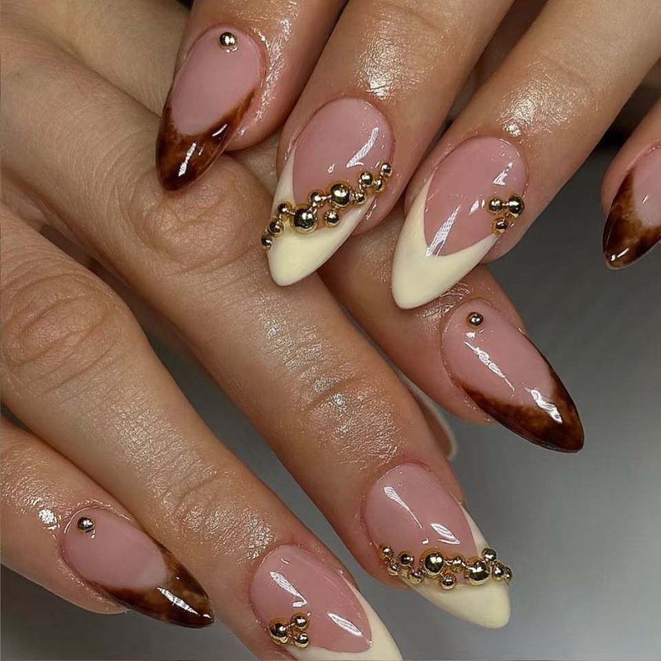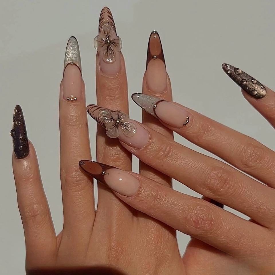 เล็บนิ้วมืออะคริลิคแบบทำมือกดบนเล็บศิลปะการทำเล็บอัลมอนด์ทำด้วยมือ