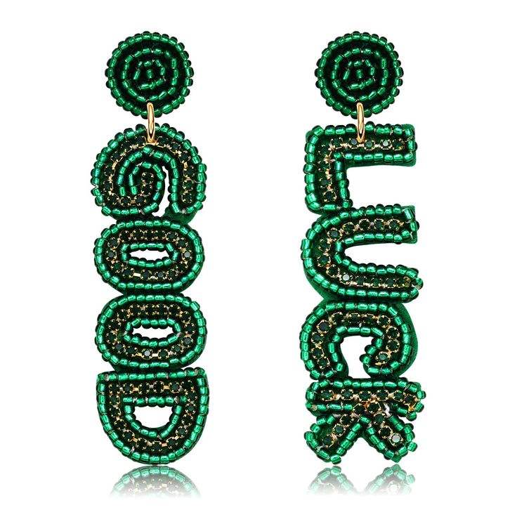 ต่างหูแฮนด์เมดวันเซนต์แพทริคลูกปัดใบไม้สีเขียวปักลูกปัดมีสไตล์และสวยงามจากอินเดีย