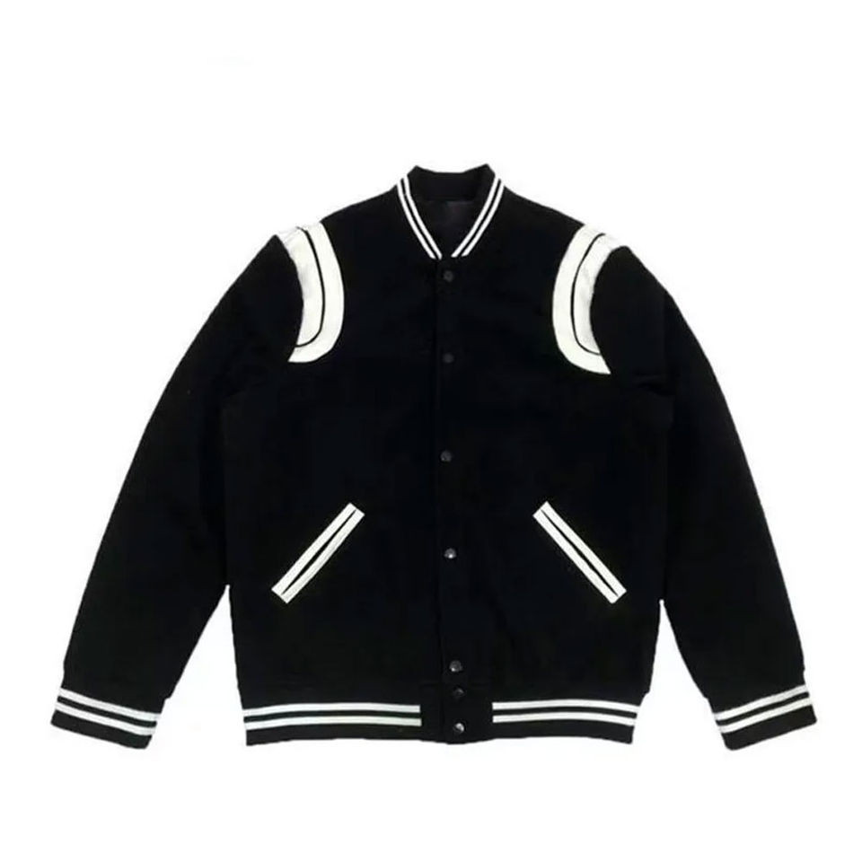 แจ็กเก็ตทีมเบสบอลทีมโรงเรียนทำด้วยมือสีแดงมีแขนเสื้อแจ็คเก็ตหนังสำหรับผู้ชาย