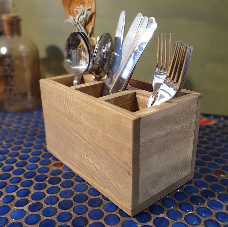 ที่วางอุปกรณ์ครัวไม้ทำมือคุณภาพสูง ที่เก็บช้อนส้อมแบบยั่งยืน ที่วางอุปกรณ์ทำครัวไม้เนื้อแข็ง