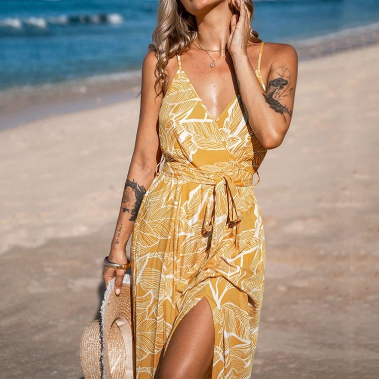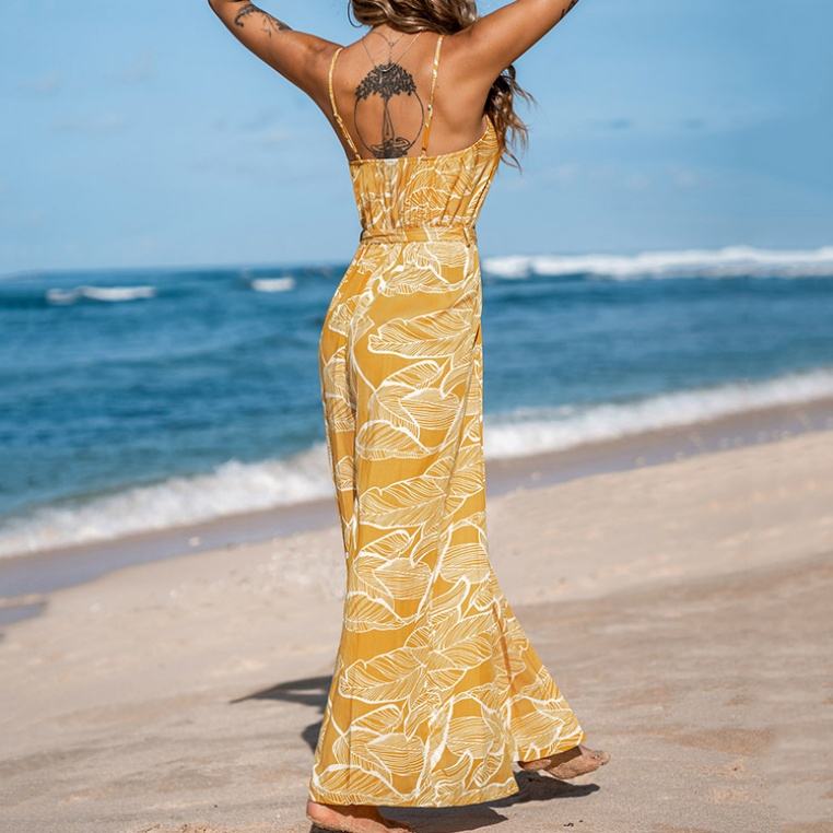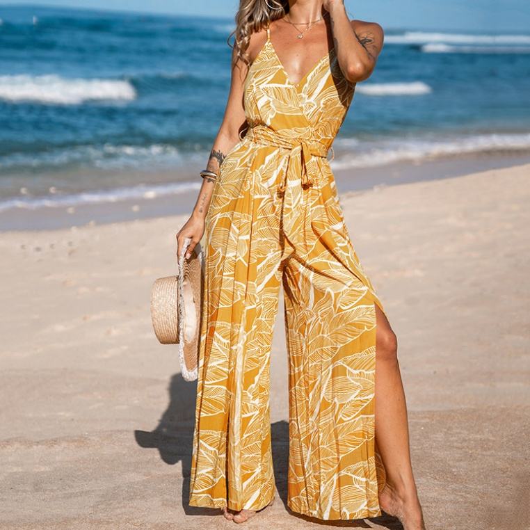 จั๊มสูทสไตล์ฮาวายคุณภาพสูง โชว์เนินอก สายเดี่ยว ผ้าเรยอน 100% เนื้อนุ่ม พิมพ์ลาย จั๊มสูทแบบชิ้นเดียวสั่งทำได้