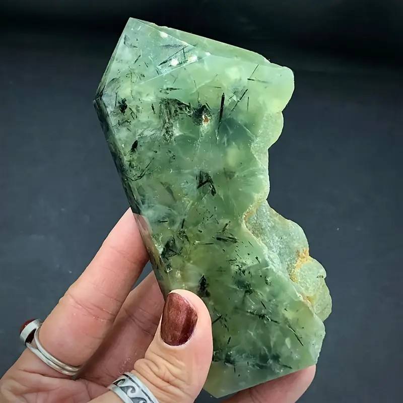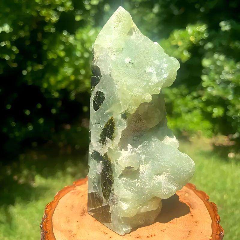 คริสตัลบำบัดคุณภาพสูง หินดิบธรรมชาติ พรีไนต์รูปทรงหอคอยสีเขียว สำหรับตกแต่งบ้าน