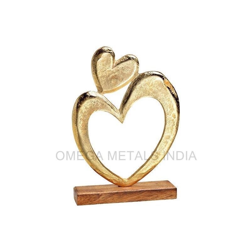อลูมิเนียมรูปหัวใจคุณภาพสูงคริสต์มาสและของตกแต่งบ้านพร้อมฐานไม้ที่มั่นคง