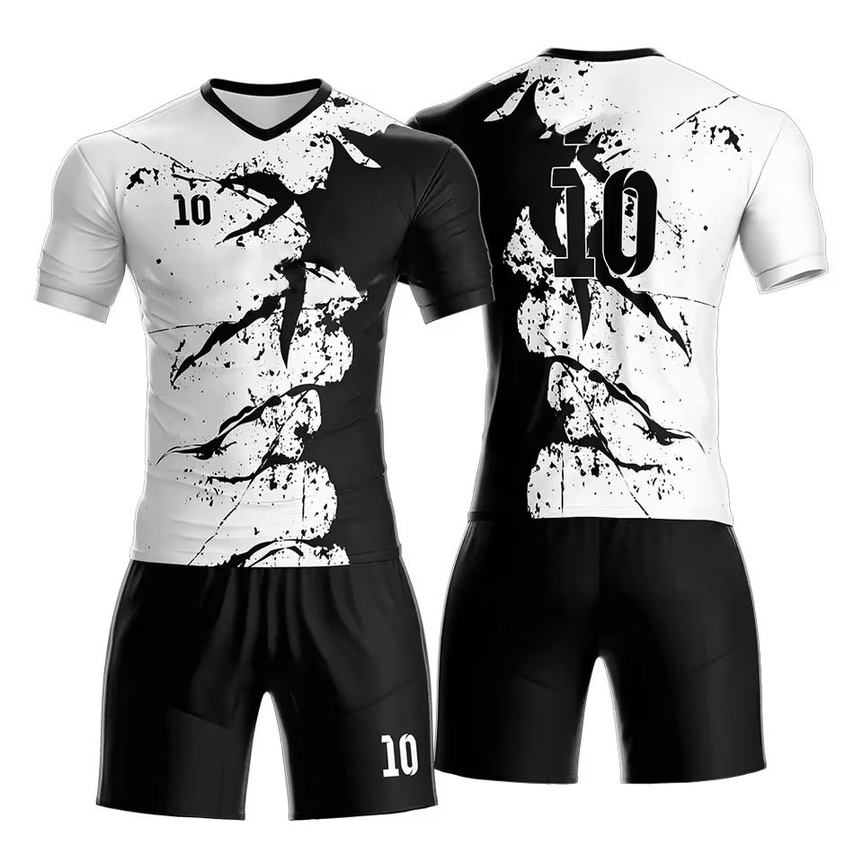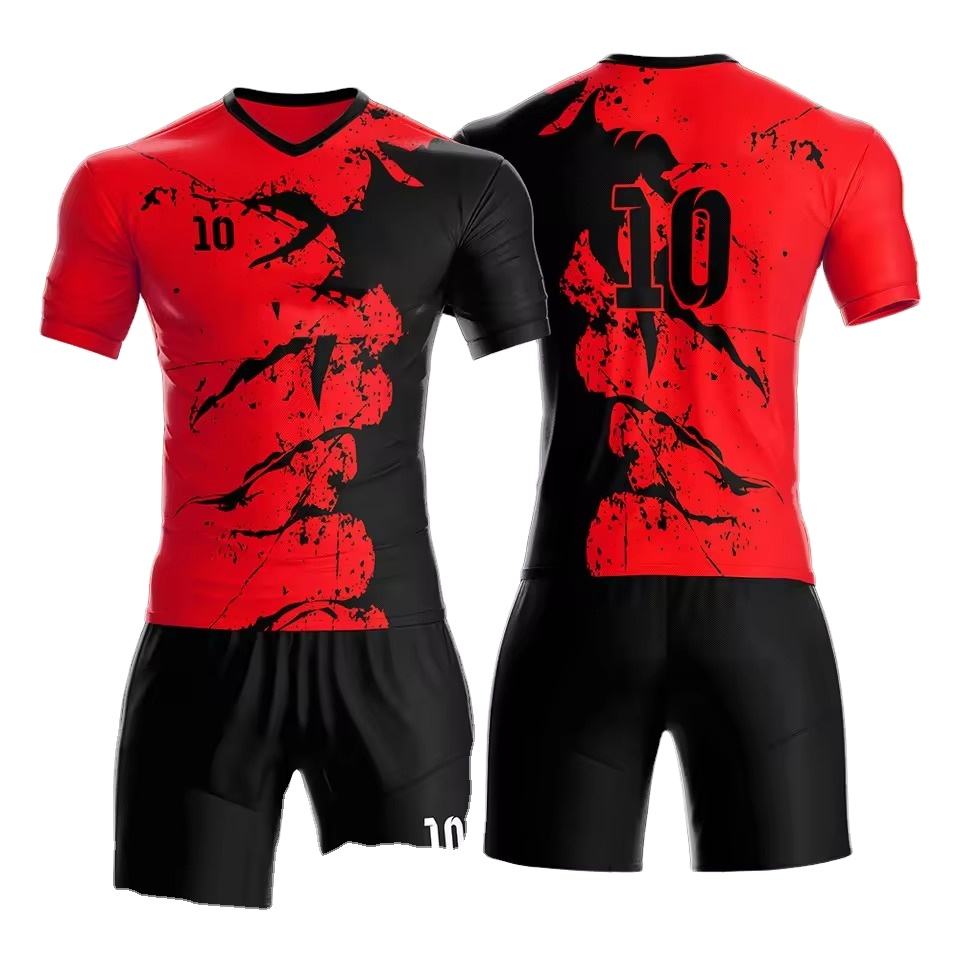 ชุดยูนิฟอร์มฟุตบอลพิมพ์ลายแบบถ่ายโอนความร้อนคุณภาพสูง แขนสั้น โพลีเอสเตอร์ 100% ปรับแต่งได้สำหรับผู้ซื้อขายส่ง