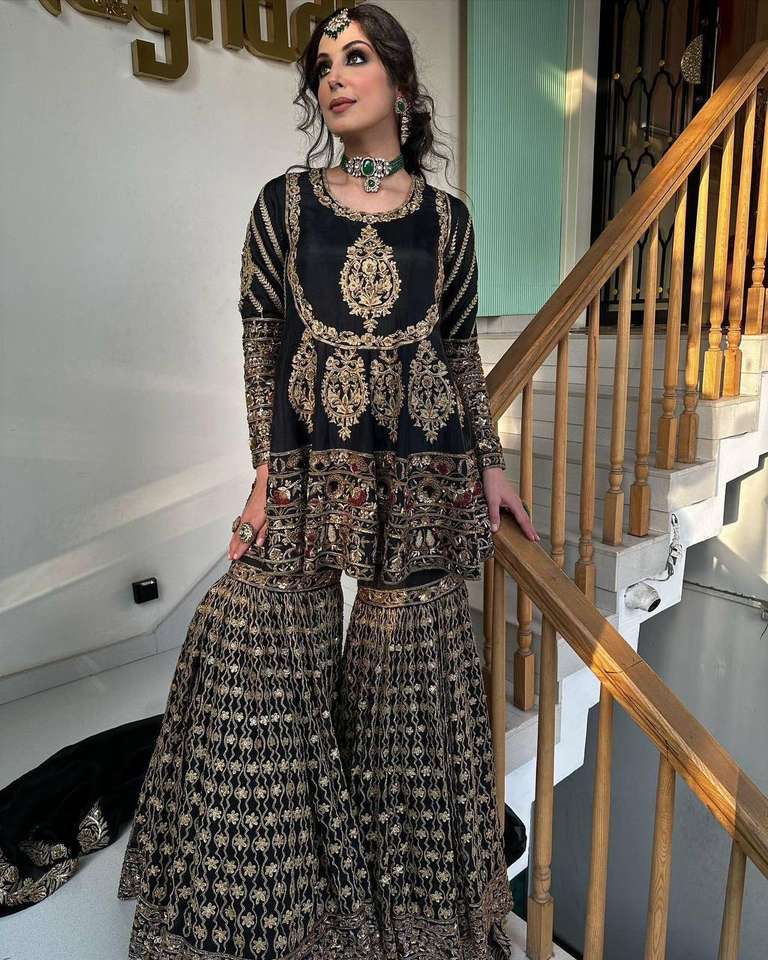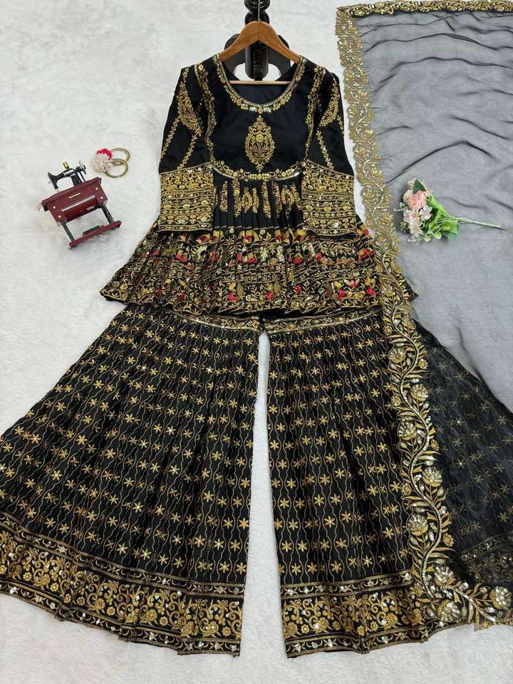 ชุดหนังเทียม georgette ด้านบน sharara และ dupatta