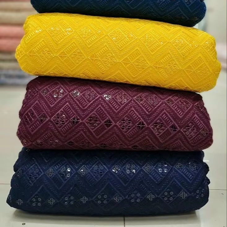 ชุดเดรสผ้าจอร์เจียแบบหนาผ้าโปร่งเคลือบพีวีซีพิมพ์ลายดอกไม้ผ้าปักสำหรับสิ่งทอในบ้าน