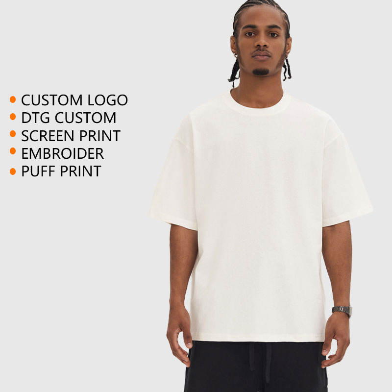 เสื้อยืดโอเวอร์ไซส์ผ้าฝ้ายคุณภาพสูงสำหรับผู้ชายผ้าคอตตอนพิมพ์ลายโชว์ไหล่แบบเรียบสำหรับสโมสร100% มีน้ำหนักมาก