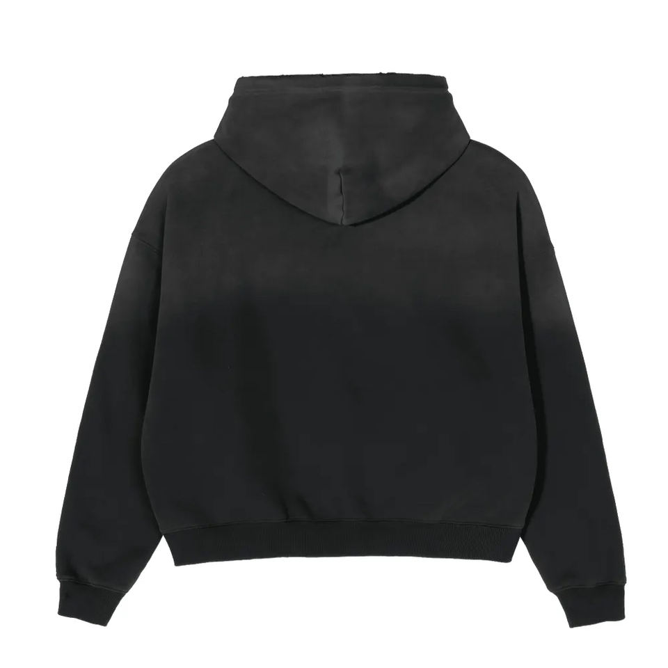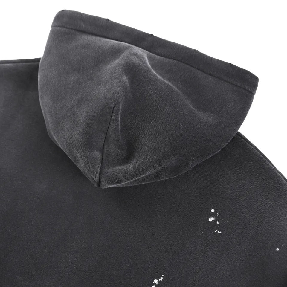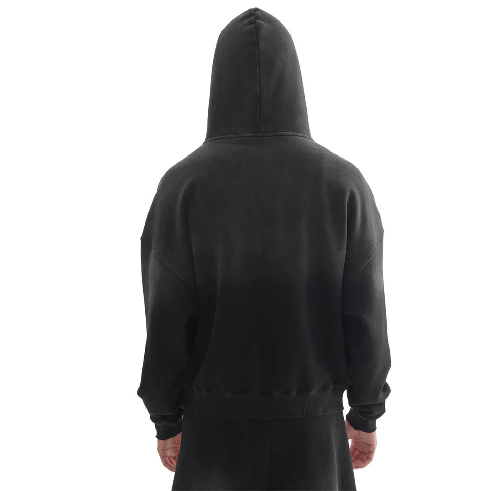 เสื้อฮู้ดดี้ผ้าคอตตอนผสมเนื้อหนักคุณภาพสูง แบบไม่มีเชือก ซักแบบแอซิดวอช สีไล่ระดับสไตล์วินเทจ