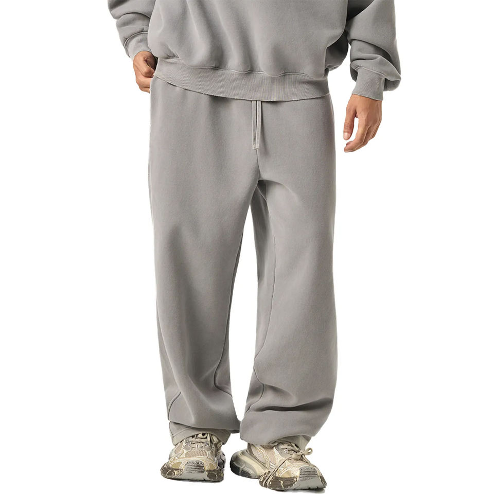 กางเกงวอร์มผ้าฟลีซคอตตอนทรงตรงคุณภาพสูง เนื้อผ้าหนา ใส่ซ้อนทับรองเท้าได้ ปักโลโก้แบบ 3 มิติตามสั่ง