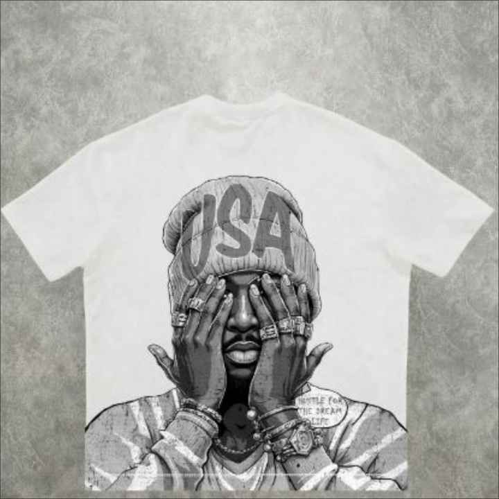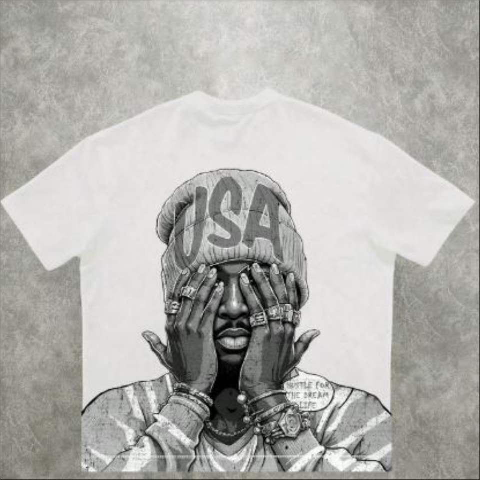 เสื้อยืดโอเวอร์ไซส์ผ้าเทอร์รี่สีขาวคุณภาพสูง เนื้อผ้าหนา 100% คอตตอน ทรงหลวมไหล่ตก เป็นมิตรต่อสิ่งแวดล้อม แห้งเร็ว สไตล์สตรีทแวร์