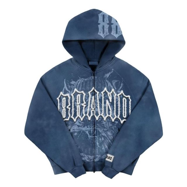 เสื้อฮู้ดซิปพิมพ์ลายตัวอักษรแอซิดจาด500GSM สำหรับผู้ชายเสื้อสไตล์สตรีทแวร์