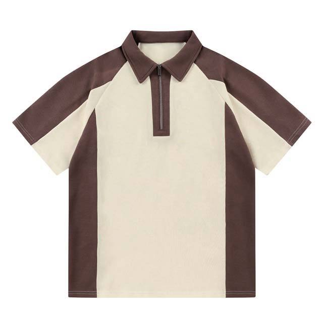 เสื้อโปโลผู้ชายผ้าคอตตอนเนื้อหนาคุณภาพสูง ดีไซน์สั่งทำพิเศษ สีตัดกัน ซิปสี่ส่วน ทรงโอเวอร์ไซส์ แบบเรียบง่าย รับผลิตแบบ OEM