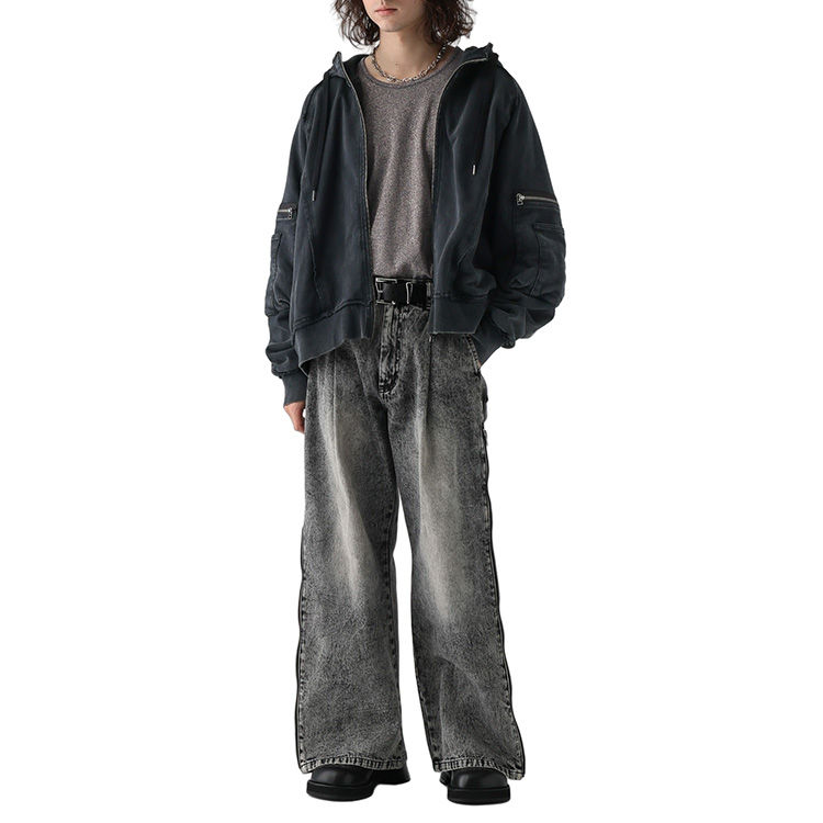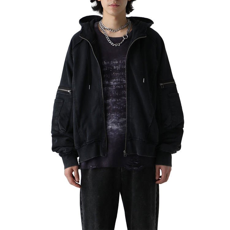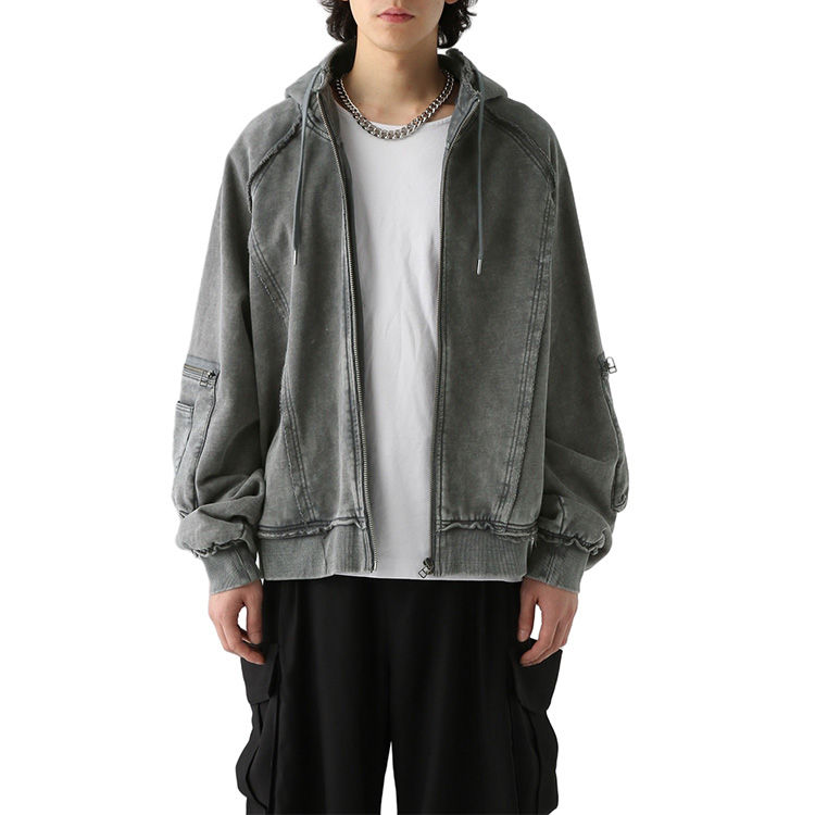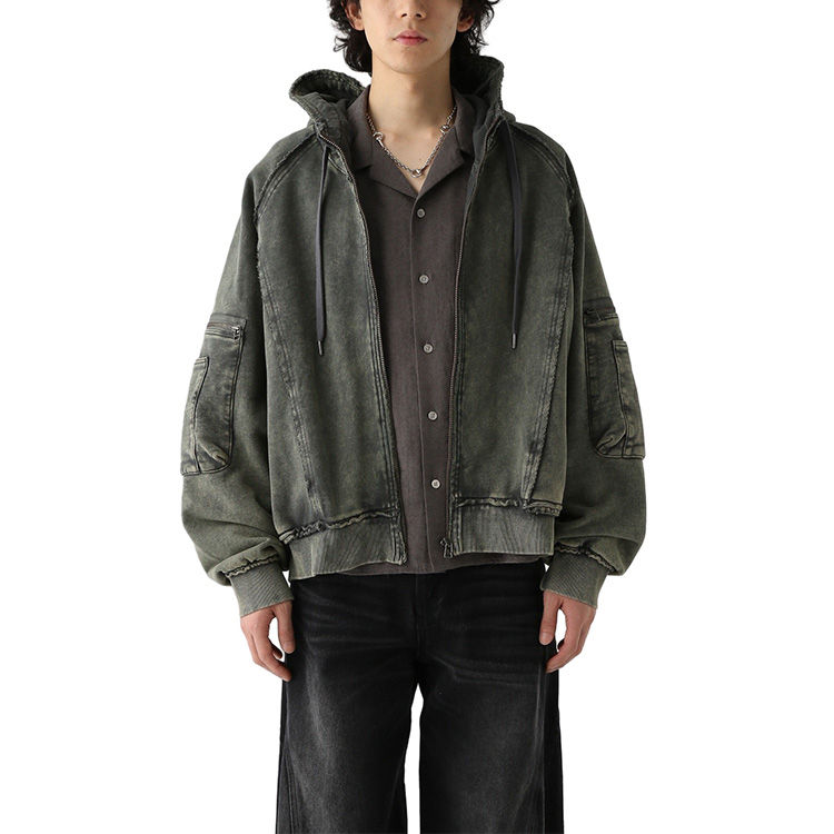 ชุดแทรคสูทผู้ชายทรงโอเวอร์ไซส์ผ้าคอตตอนหนานุ่มคุณภาพสูง สไตล์วินเทจ แต่งลายปะติด พร้อมกระเป๋าซิปแบบคาร์โก้