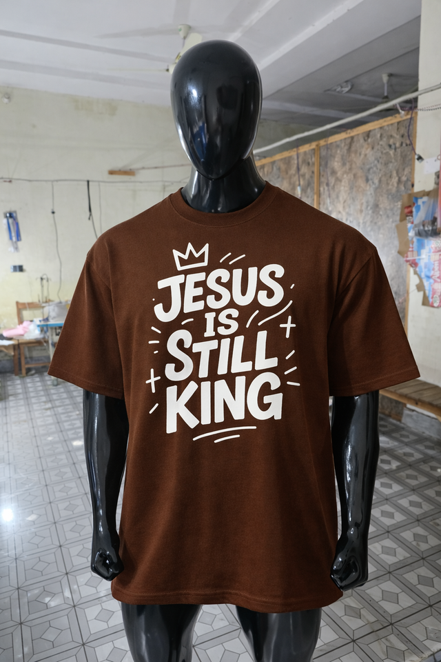เสื้อยืดคอตตอนคุณภาพสูงทรงโอเวอร์ไซส์ลายพระเยซูคือราชา สำหรับผู้ชาย สไตล์คริสเตียน สตรีทแวร์ วินเทจ ลายกราฟิก ทรงไหล่ตก