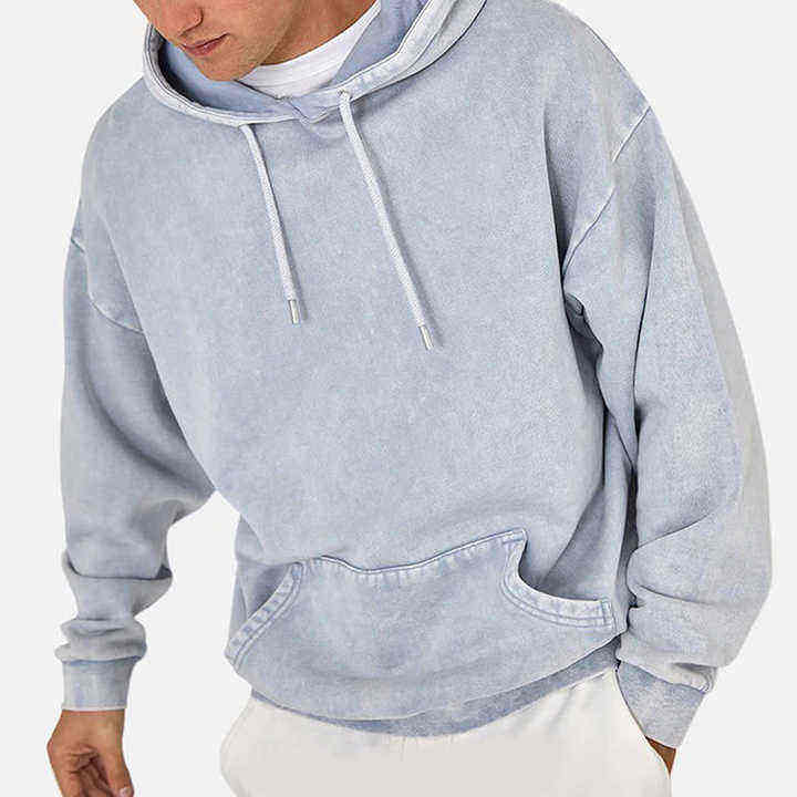 เสื้อฮู้ดดี้ผู้ชายคุณภาพสูง หนานุ่ม สไตล์วินเทจซีดจาง 100% ผ้าฝ้ายออร์แกนิค ทรงหลวมยาว พิมพ์ลาย ระบายอากาศได้ดี
