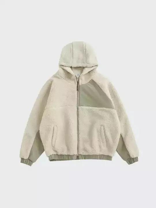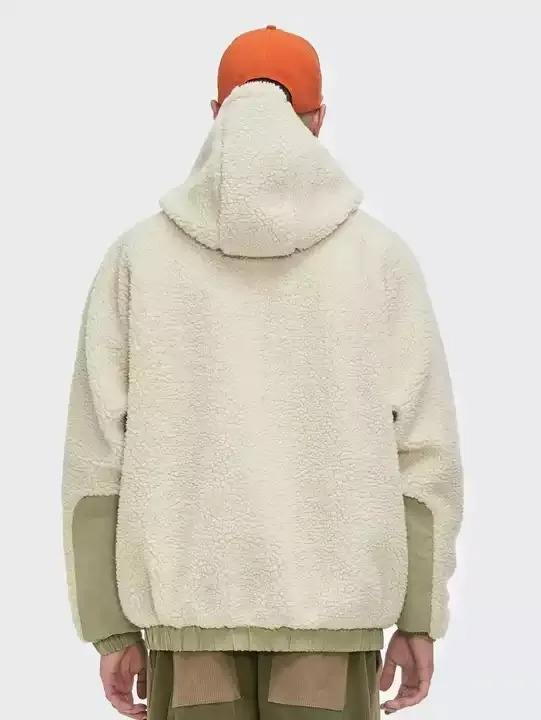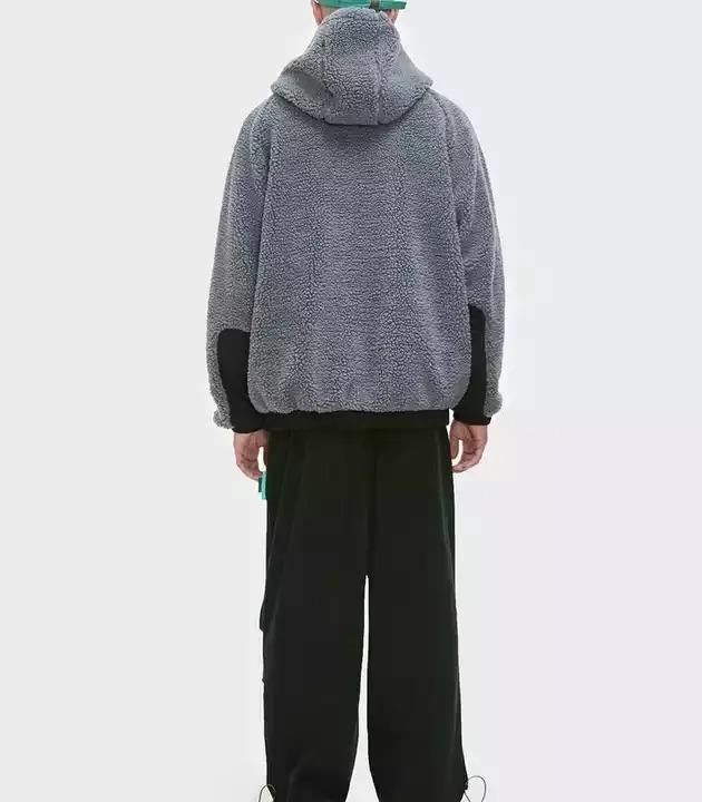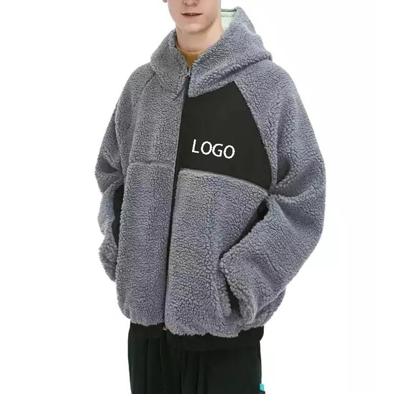 แจ็กเก็ตมีฮู้ดผ้าฟลีซปะต่อรุ่นเฮฟวี่น้ำหนักขนแกะมีซิปปรับแต่งโลโก้ได้ไซส์ใหญ่พิเศษสไตล์สตรีท