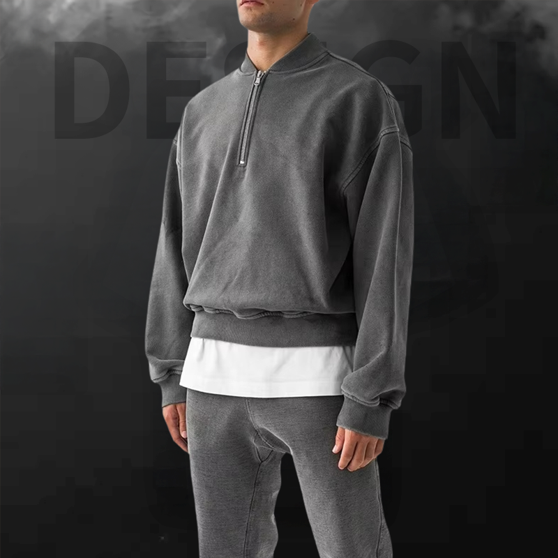 High Quality Eco-Friendly Winter Heavyweight Quarter Zip Sweatshirt 100% Cotton Vintage Acid Wash Distressed Oversized Custom