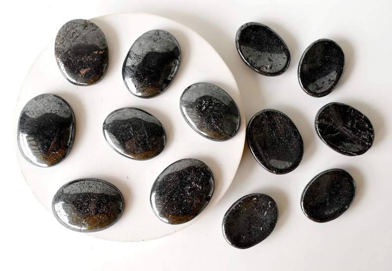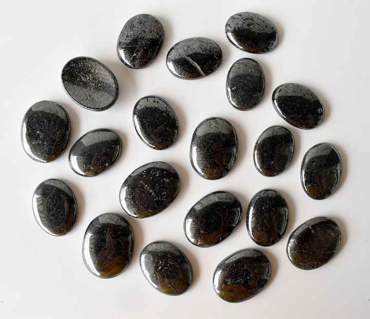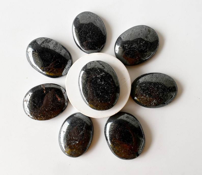 หินฮีมาไทต์กังวลหินธรรมชาติบำบัดด้วยมือพลอยขัดเงาขนาดเท่ากระเป๋าสำหรับทำสมาธิ