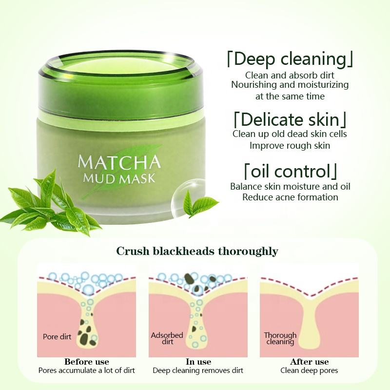 มาส์กโคลนชาเขียวสมุนไพรคุณภาพสูง 85 กรัม - ลดเลือนฝ้า กระ จุดด่างดำ กระชับรูขุมขน สาหร่ายเซราไมด์ พร้อมโลโก้ปรับแต่งได้ตามต้องการ (OEM)