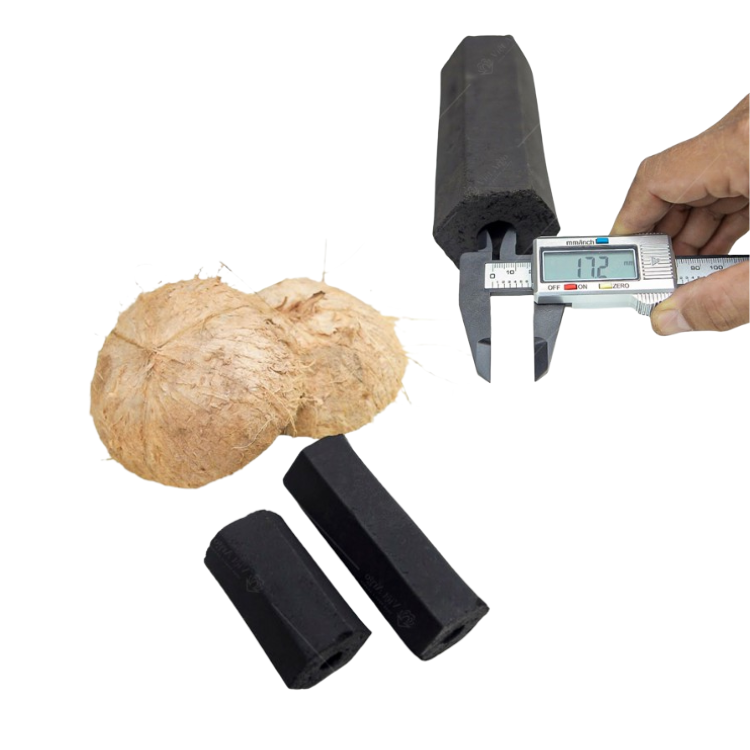 เครื่องย่างถ่านหินทรงหกเหลี่ยมทำจากกะลามะพร้าวพร้อมถ่านแบบแท่งเวียดนาม