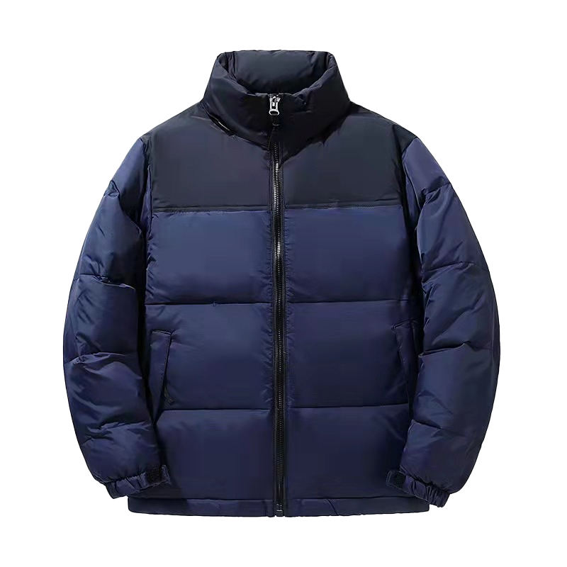 แจ็กเก็ตขนเป็ดสีดำของผู้ชายแนวสตรีทปกตั้งออกแบบให้ความอบอุ่นสำหรับผู้ใหญ่