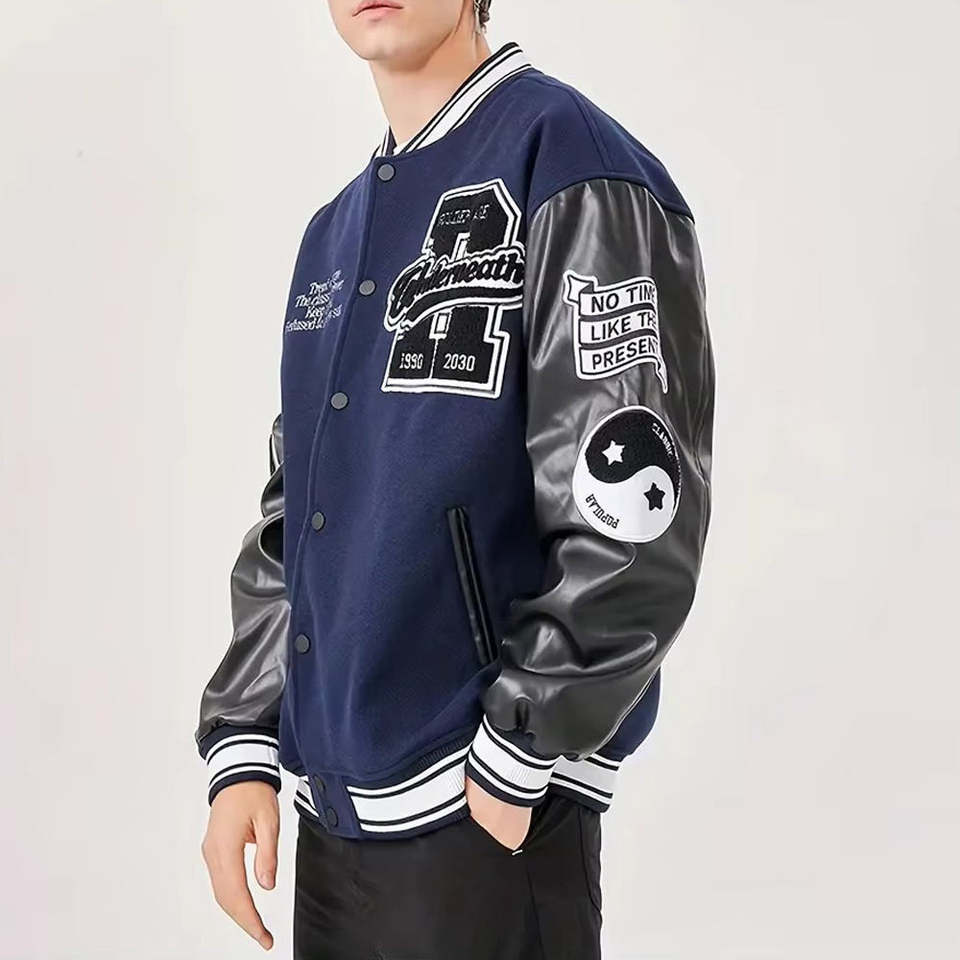 เสื้อแจ็คเก็ตเบสบอลทรงบอมเบอร์ วาร์ซิตี้ ลายพราง ผ้าแคนวาสเคลือบ คุณภาพสูง ระบายอากาศได้ดี เป็นมิตรกับสิ่งแวดล้อม สำหรับผู้ชาย สไตล์คอลเลจ แบบสั่งทำพิเศษ