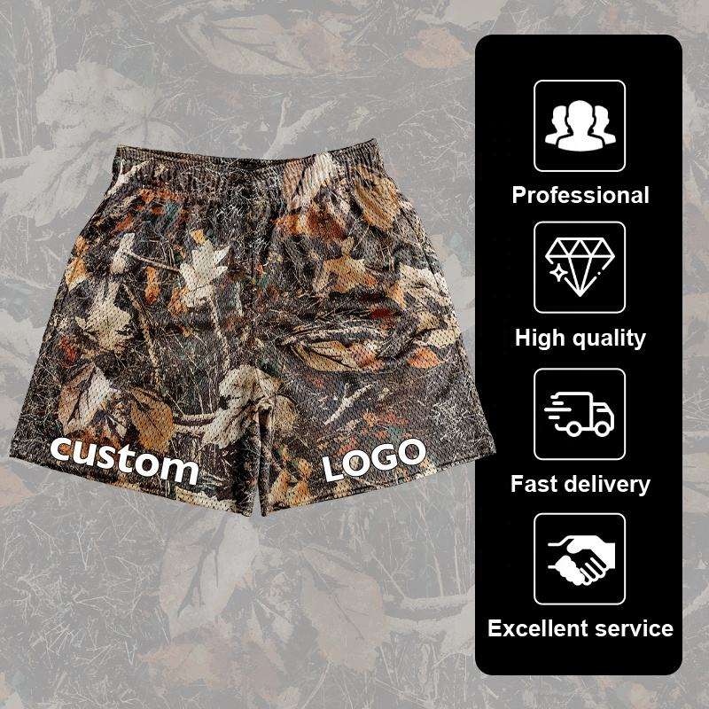 กางเกงขาสั้นผู้ชายผ้าโพลีเอสเตอร์แบบแห้งเร็วเชือกรูดปิดโลโก้ด้านหน้า100% ตาข่ายถ่ายโอนความร้อนบนถนนสูง