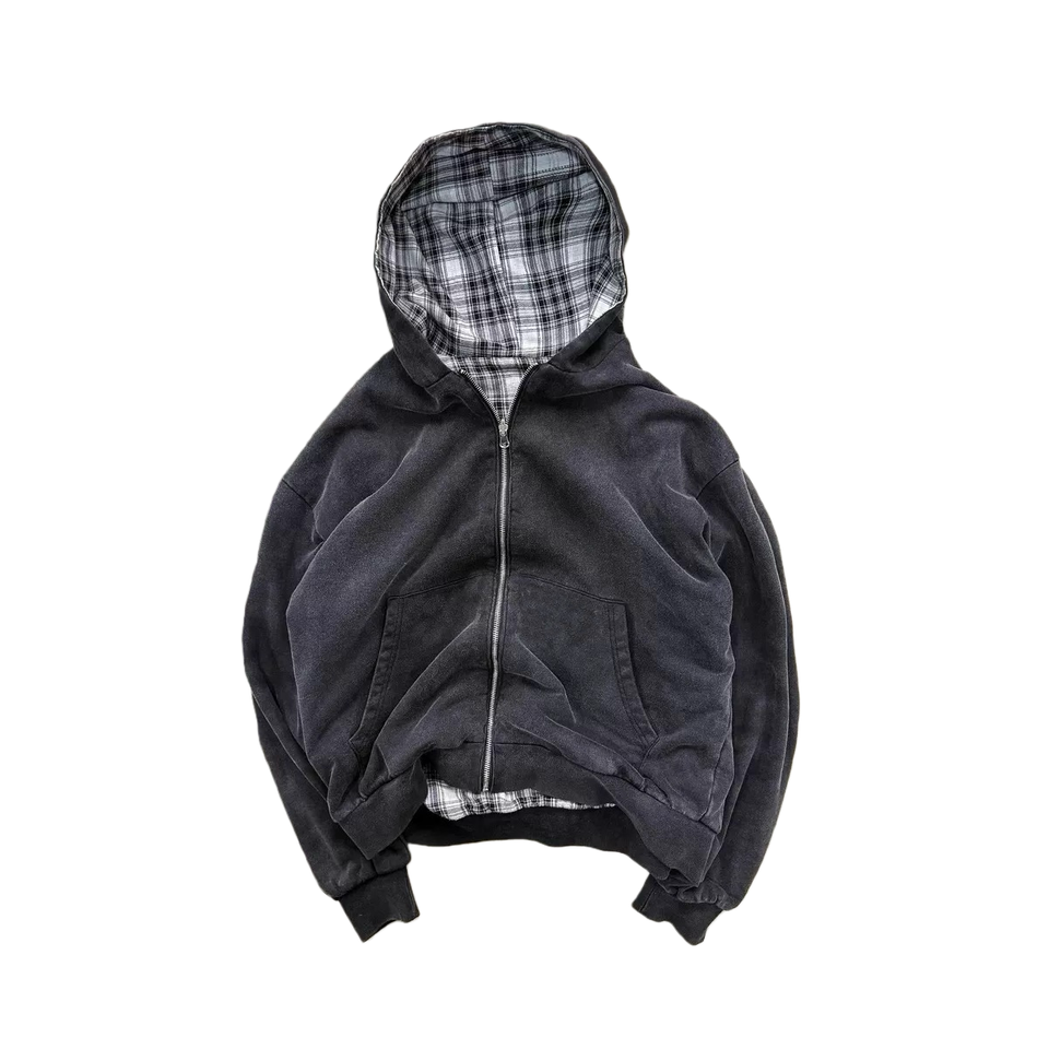 เสื้อฮู้ดดี้ผ้าฝ้ายแท้ 100% ลายสก็อตแบบกลับด้านได้ สไตล์ Y2K คุณภาพสูง สำหรับทุกเพศ เหมาะสำหรับใส่ลำลองในฤดูหนาว ปักลายเรียบง่าย
