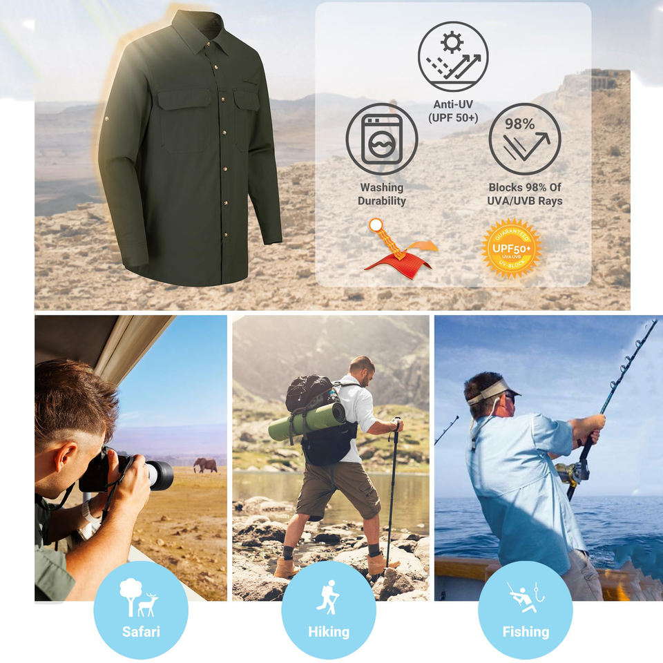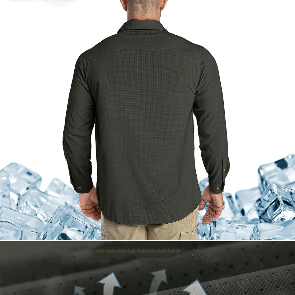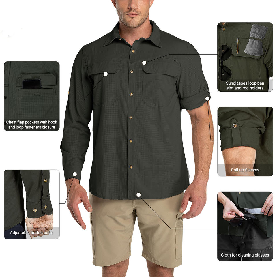 เสื้อเดินป่าคุณภาพสูงสำหรับผู้ชาย เสื้อตกปลา ระบายอากาศ แห้งเร็ว มีกระเป๋าหลายช่อง เสื้อผู้ชายสำหรับกิจกรรมกลางแจ้ง เสื้อเดินป่าสำหรับผู้ชาย