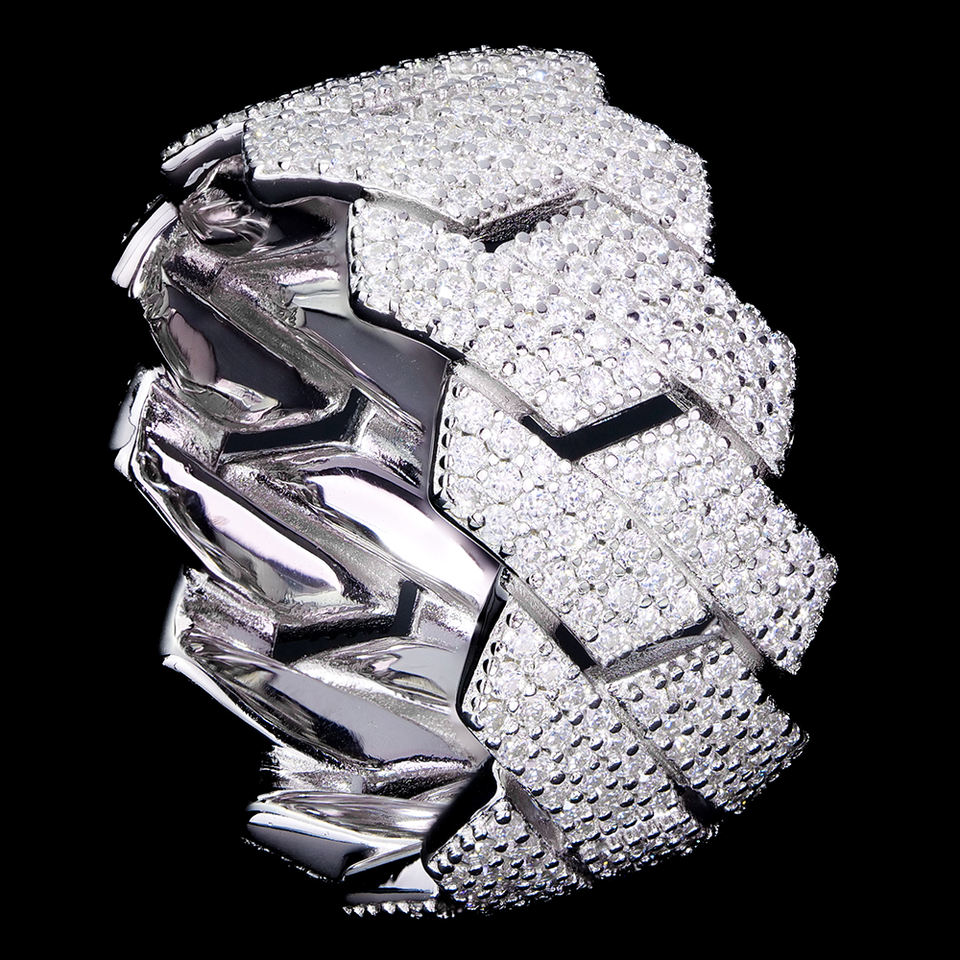 เครื่องประดับฮิปฮอปคุณภาพสูงแบบสั่งทำพิเศษ แหวนคิวบา 3 แถว เงินแท้ 925 ประดับเพชรโมอิสซาไนต์เกรด VVS ระดับ Iced Out สำหรับผู้ชาย