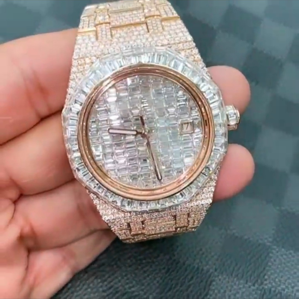 คุณภาพสูง Hip Hop ที่กําหนดเอง Iced out Lab ปลูกเพชรนาฬิกาสําหรับชาย VVS เพชรนาฬิกาของขวัญ