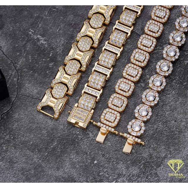 เครื่องประดับฮิปฮอปสร้อยข้อมือ925เทนนิสทรงกลมเงินสเตอร์ลิงประดับเพชรมออิสซาไนต์