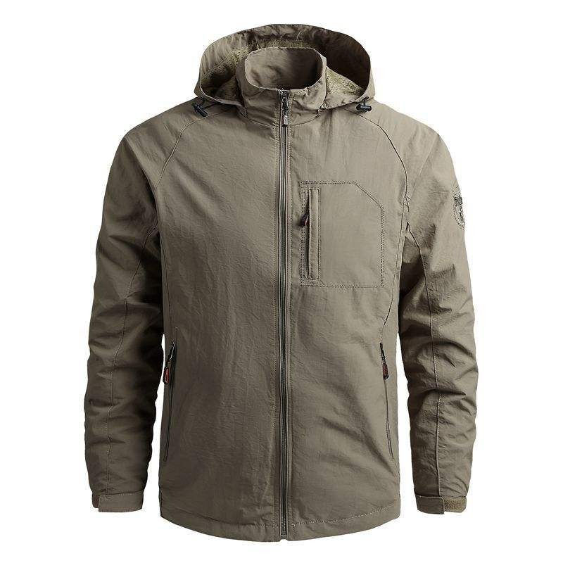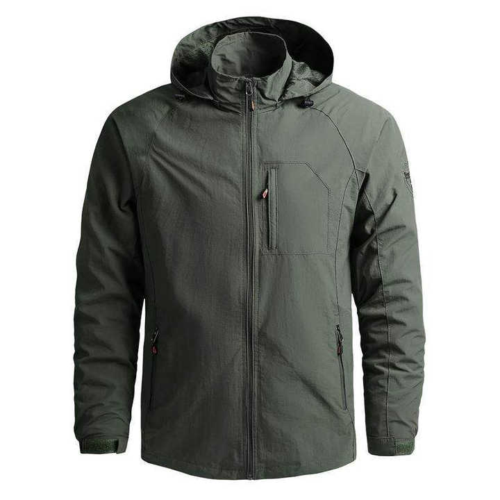 แจ็กเก็ตกันน้ำมีฮู้ดสำหรับผู้ชายเสื้อกันลมน้ำหนักเบาสามารถใส่กลับด้านได้