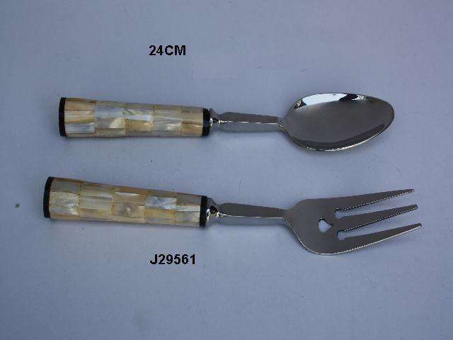 ชุดสลัดด้ามฮอร์นพร้อมลูกบิดชุดสลัดทำจากเหล็กอุปกรณ์ขัดกระจกช้อนตักสลัดและส้อมสลัด