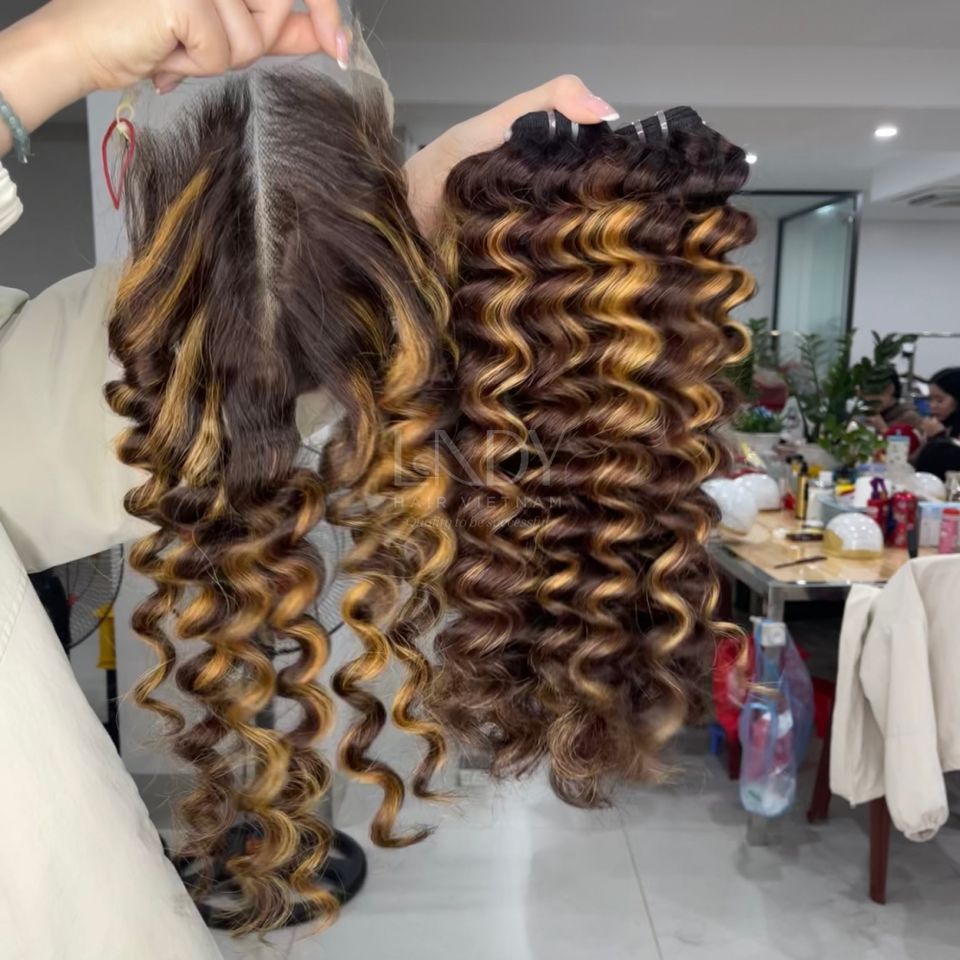 ผมแท้เวียดนามคุณภาพสูง ราคาสุดคุ้ม แบบลอนธรรมชาติ ไฮไลท์สีสวย ชุดต่อผมพร้อมเชือกผูกปิดผม ปี 2025