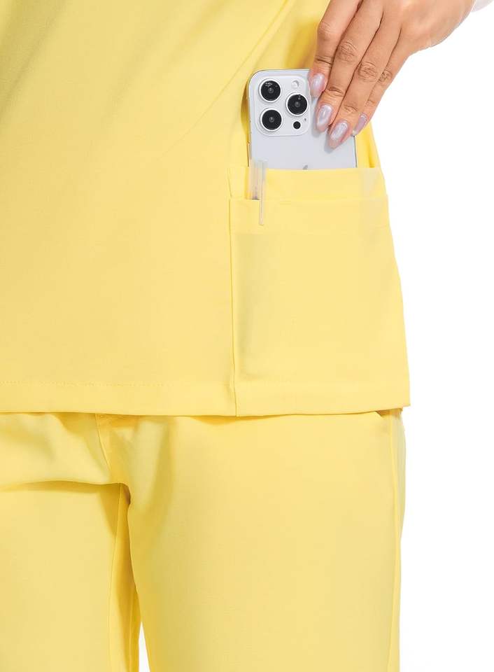 ชุดยูนิฟอร์มพยาบาลผ้าสแปนเด็กซ์คุณภาพสูง แบบคอตั้ง แขนสั้น สีและโลโก้สั่งทำได้ 2 ชิ้น แบบ unisex