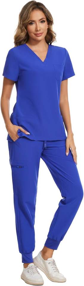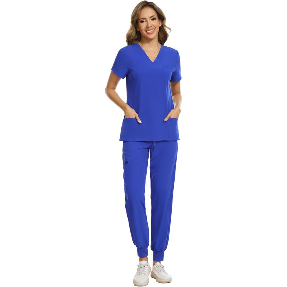 ชุดเครื่องแบบขัดพยาบาล2ชิ้นใช้ได้ทั้งชายและหญิงคอตั้งแขนสั้นพร้อมโลโก้และสีตามสั่ง
