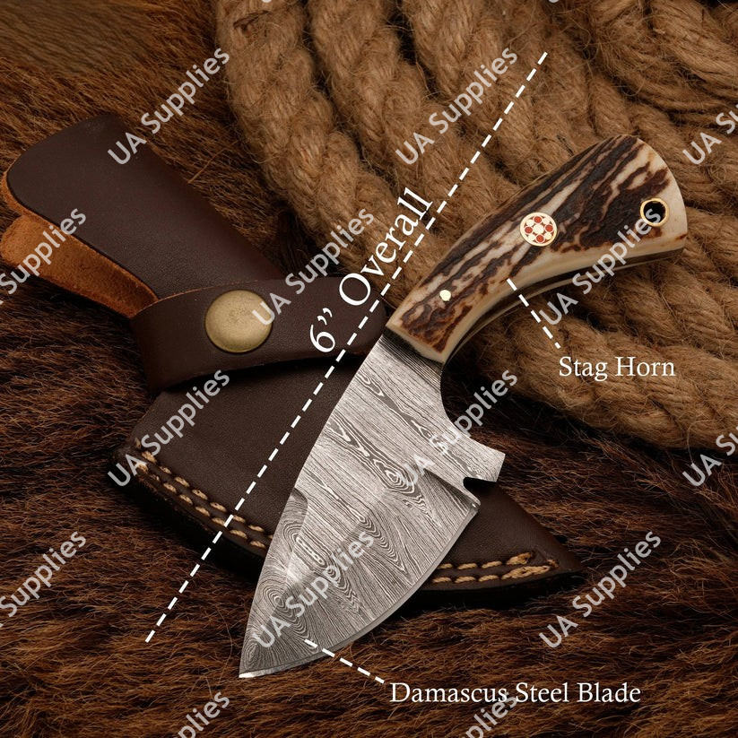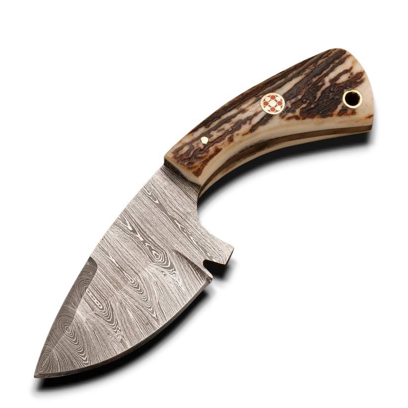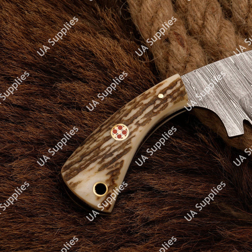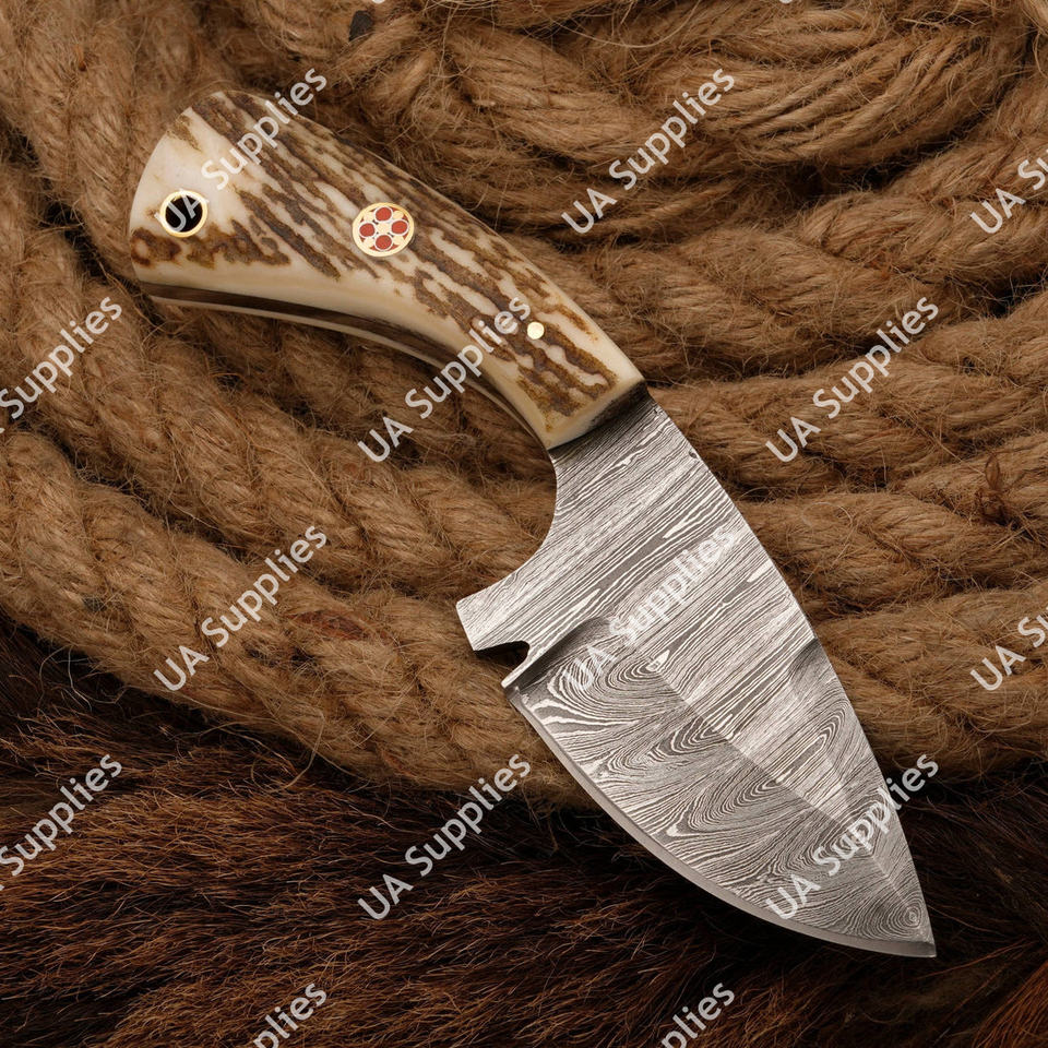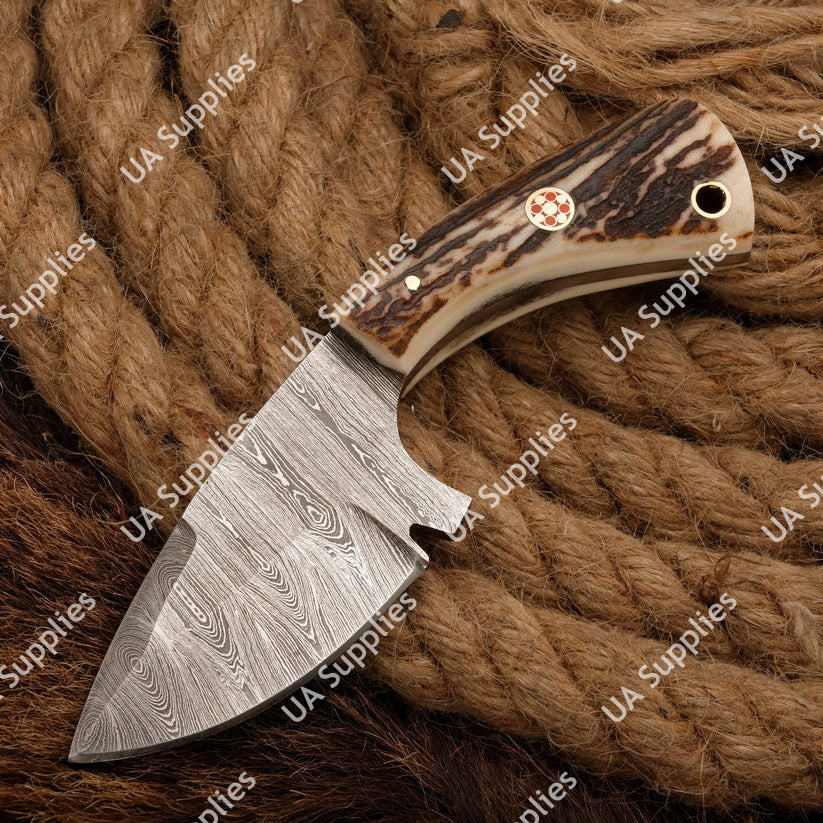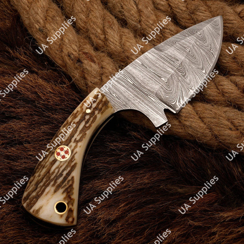 มีดสกินเนอร์เหล็กดามัสกัสคุณภาพสูง ขายดี สำหรับการล่าสัตว์แบบมืออาชีพ EDC อเนกประสงค์ ปลายแหลม ด้ามเขาสัตว์