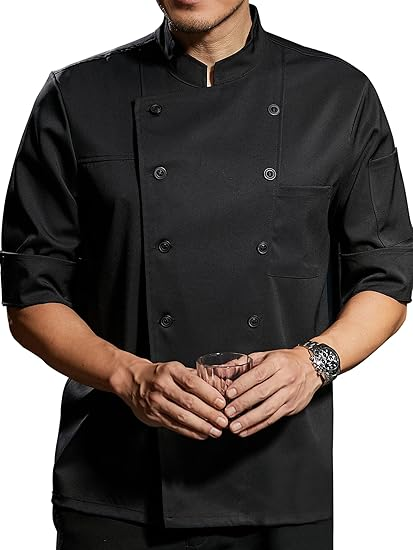 ชุดยูนิฟอร์มร้านอาหารคุณภาพสูง เสื้อเชฟแขนสั้นสำหรับพนักงานเสิร์ฟและพนักงานบริการ