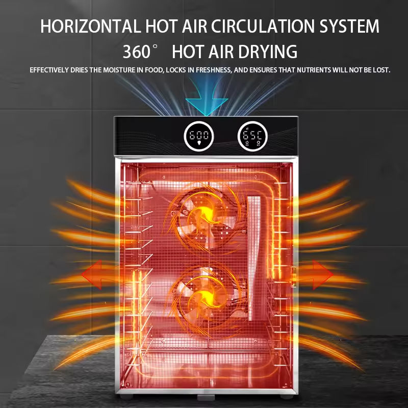 เครื่องอบแห้งผลไม้และผักคุณภาพสูง 12 ชั้น พร้อมปุ่มควบคุมอิเล็กทรอนิกส์ ประตูกระจกเต็มบาน สำหรับอบผลไม้และขนมขบเคี้ยว