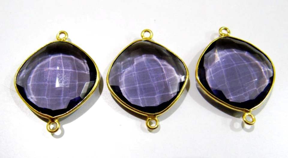 ตัวเชื่อมต่อแบบวงแหวนคู่เคลือบไฮโดรควอตซ์คุณภาพสูง ขนาด 13-19 มม. สำหรับอเมทิสต์ทรงบริโอเลต ทรงคุชชั่น ทรงสี่เหลี่ยม เคลือบสีเงิน/ทอง/ดำ