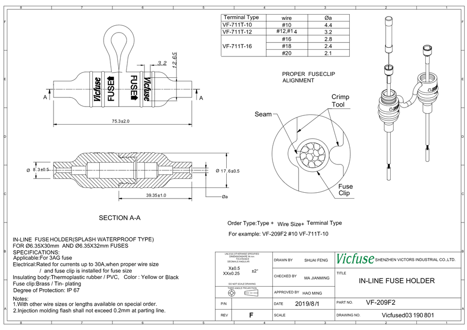 ที่ใส่ฟิวส์30A อันดับ IP67กันน้ำสำหรับสายเชื่อม #10สำหรับยานยนต์ทางทะเลและไฟฟ้า